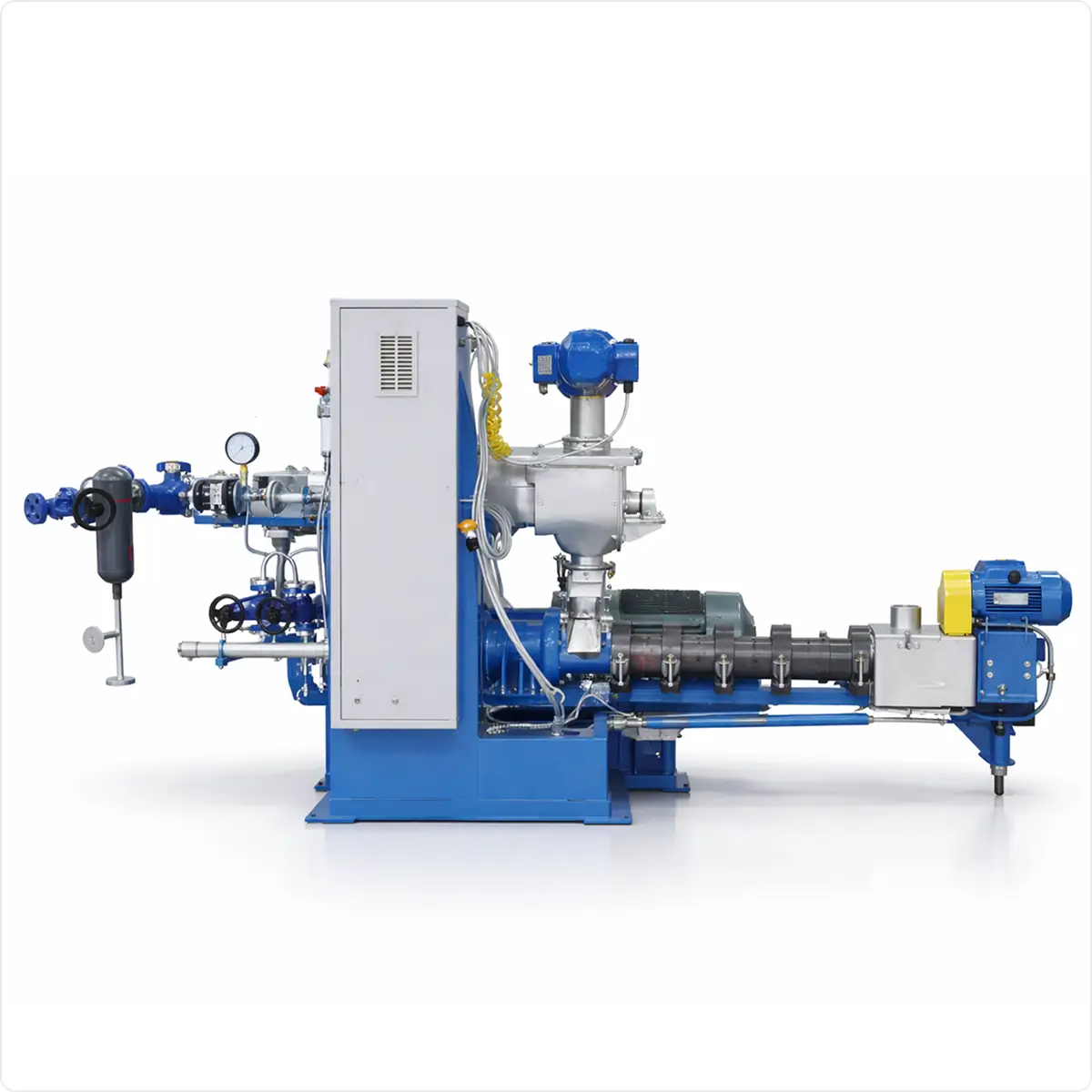 Extruderul E-250 asigură alimentarea uniformă a materiei prime în zona de încălzire și previne separarea componentelor în timpul extrudării.